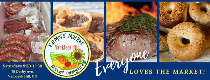 Le Marché champêtre de Vankleek Hill est ouvert toute l’année! Depuis plus de 20 ans les fermiers, transformateurs, artistes et artisans de notre belle région se rassemblent chaque samedi pour offrir leurs produits frais et locaux. Des fruits, des légumes, des fines herbes, des viandes, des miels, des conserves, des plantes et des fleurs - venant directement de la ferme - sont disponibles ainsi que des plats et des collations cuisiner, des pains frais, des desserts et des produits artisanaux uniques. Des démonstrations culinaires ainsi que des présentations musicales sont aussi présentes lors d’occasions spéciales. Vous ne pouvez absolument pas manquer le Marché champêtre de Vankleek Hill! (Les samedis, 10h-1h).